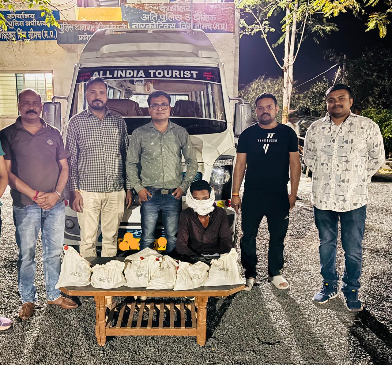 केंद्र सरकार द्वारा चलाए जा रहे अखिल भारतीय नशे पर प्रहार अभियान के तहत मध्यप्रदेश पुलिस प्रमुख श्री कैलाश मकवाना पुलिस महानिदेशक महोदय पुलिस मुख्यालय भोपाल के निर्देशन, नारकोटिक्स विंग प्रमुख श्री डी श्रीनिवास वर्मा अतिरिक्त पुलिस महानिदेशक नारकोटिक्स मुख्यालय भोपाल के निर्देशन तथा श्री महेशचंद जैन उप पुलिस महानिरीक्षक नारकोटिक्स विंग इन्दौर के मार्गदर्शन एवं अति. पुलिस अधीक्षक श्रीमती मांगु अजनार नारकोटिक्स विंग मन्दसौर एंव उप पुलिस अधीक्षक श्री संतोष हाडा नारकोटिक्स प्रकोष्ठ नीमच के नेतृत्व मे चलाये जा रहे अवैध मादक पदार्थों की धरपकड़ अभियान के अन्तर्गत नारकोटिक्स शाखा की नीमच ईकाई द्वारा कार्यवाही को अन्जाम दिया गया जिसमे 10 किलोग्राम से अधिक अवैध मादक पदार्थ अफीम को जप्त करते हुए सफ़ेद रंग की फ़ोर्स कंपनी की ट्रेवलर को जप्त किया गया।