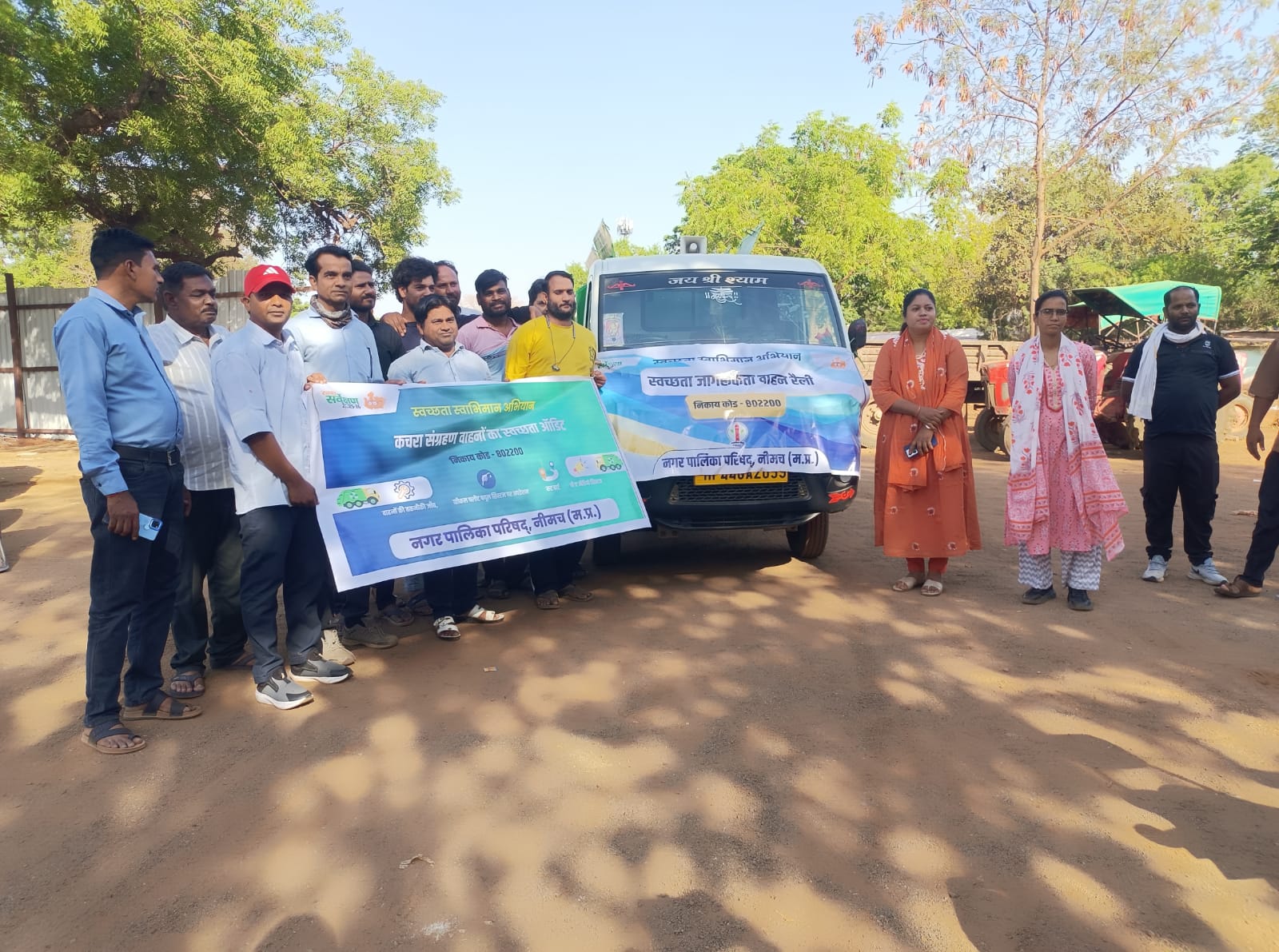नीमच। नगर पालिका परिषद नीमच ने सोमवार 13 अप्रैल को स्वच्छता सर्वेक्षण 2025-26 के तहत नगर पालिका अध्यक्ष श्रीमती स्वाति गौरव चोपड़ा के मार्गदर्शन एवं मुख्य नगर पालिका अधिकारी श्रीमती दुर्गा बामनिया व स्वास्थ्य सभापति श्री धर्मेश पुरोहित के नेतृत्व में सहयोगी संस्था-यूनिक वेस्ट मैनेजमेंट एंड कंसल्टेंसी प्राइवेट लिमिटेड के सहयोग से शहर में स्वच्छता जागरूकता वाहन रैली का आयोजन किया। वाहन रैली को नगर पालिका की वाहन शाखा प्रभारी उप यंत्री श्रीमती एवं अपर्णा गिरी एवं स्वास्थ्य अधिकारी श्री दिनेश टांक ने बंगला नंबर 60 से हरी झंडी दिखाकर रवाना किया। वाहन रैली रास्ते भर स्वच्छता गीतों से शहर को गूंजायमान करते एवं स्वच्छता का संदेश देते हुए निकली।